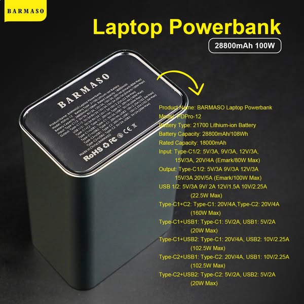 100W Laptop Powerbank 28800mAh (PDPro-12)