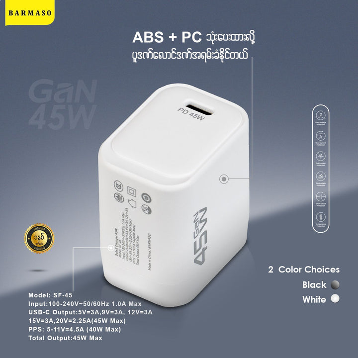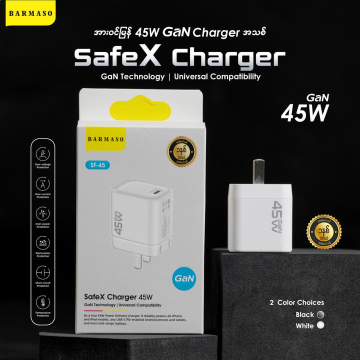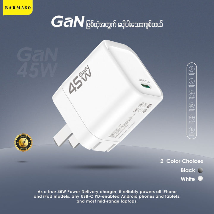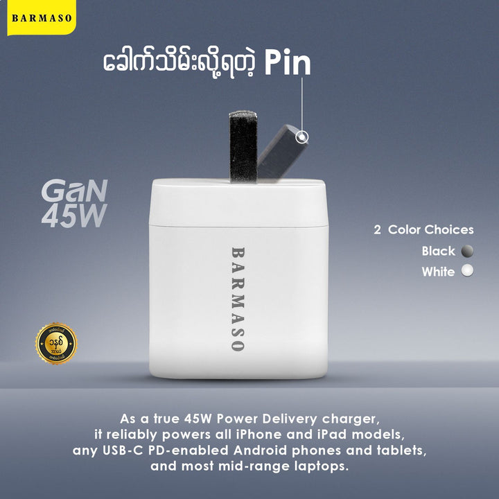 45W ဖြစ်တဲ့အတွက် ဒီCharger က တခြားDevice တွေနဲ့ပါ တွဲသုံးလို့ရပါတယ်။